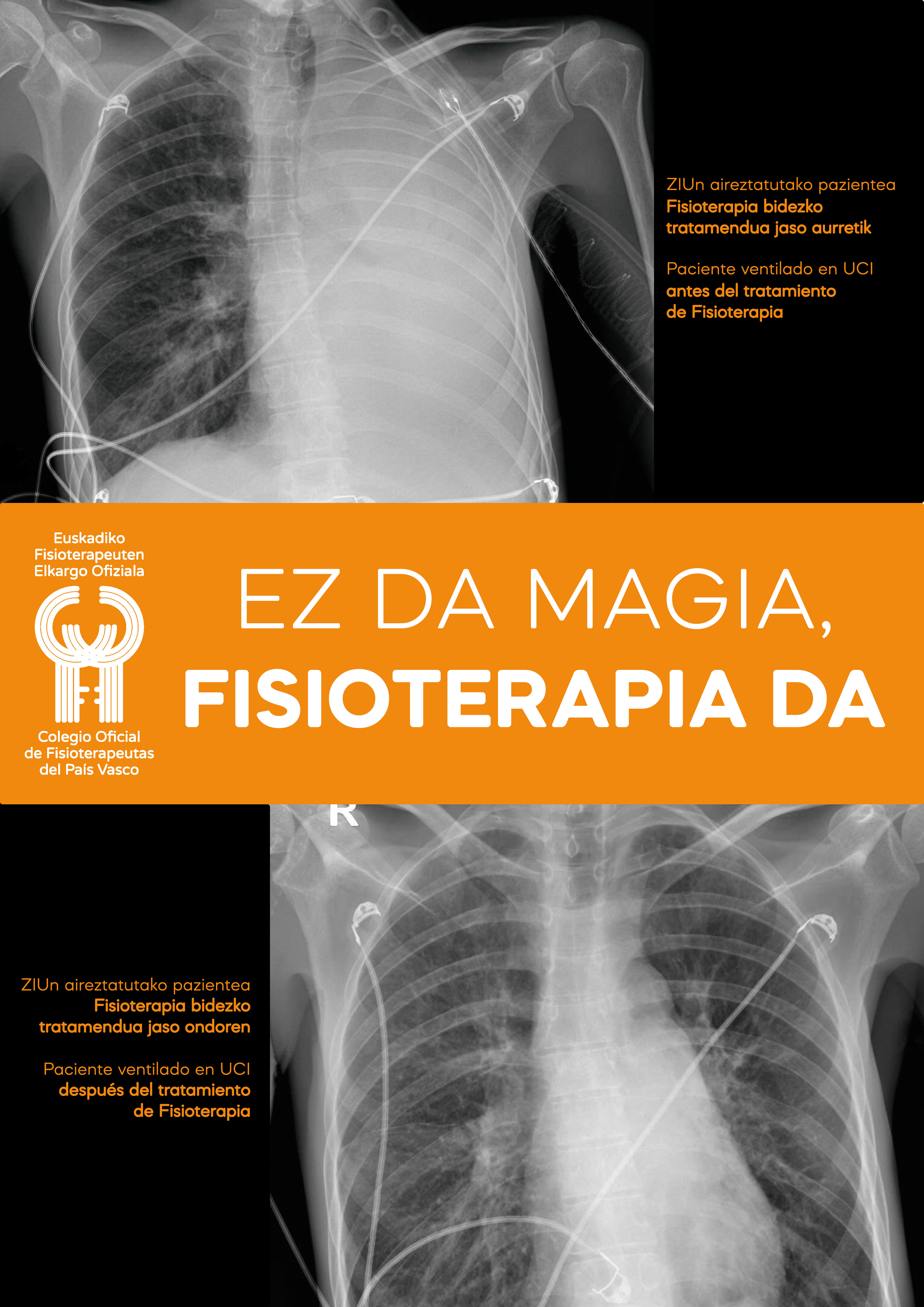 Bajo el lema “Ez da magia, fisioterapia da”, el COFPV lanza una campaña de sensibilización para poner en valor el papel de esta disciplina como parte esencial de los equipos hospitalarios, especialmente en unidades de alta complejidad como la UCI, donde su presencia continúa siendo limitada pese a la evidencia científica existente.